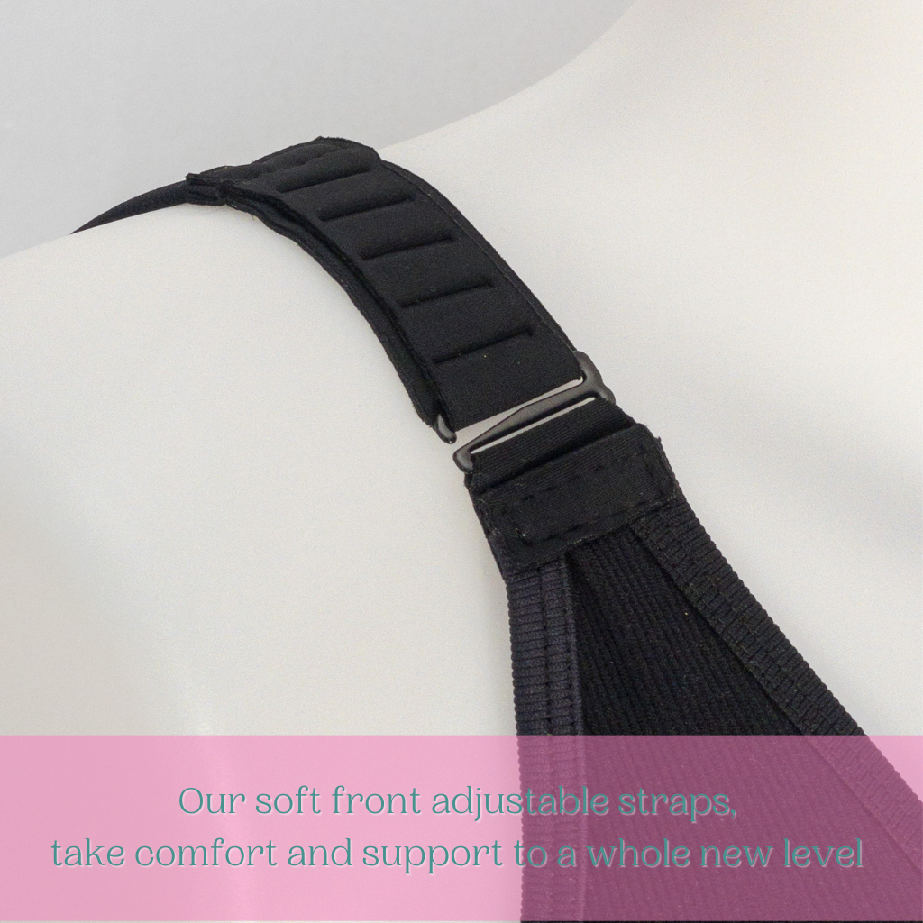 Lifting from the front, the straps have a hook that you can adjust to suit your preferred strap length. These straps are soft, preventing digging into your shoulders and are unlike normal sliding bra straps as they stay in position. Taking your bra off couldn't be much easier - just unhook, drop and step out or lift over your head.